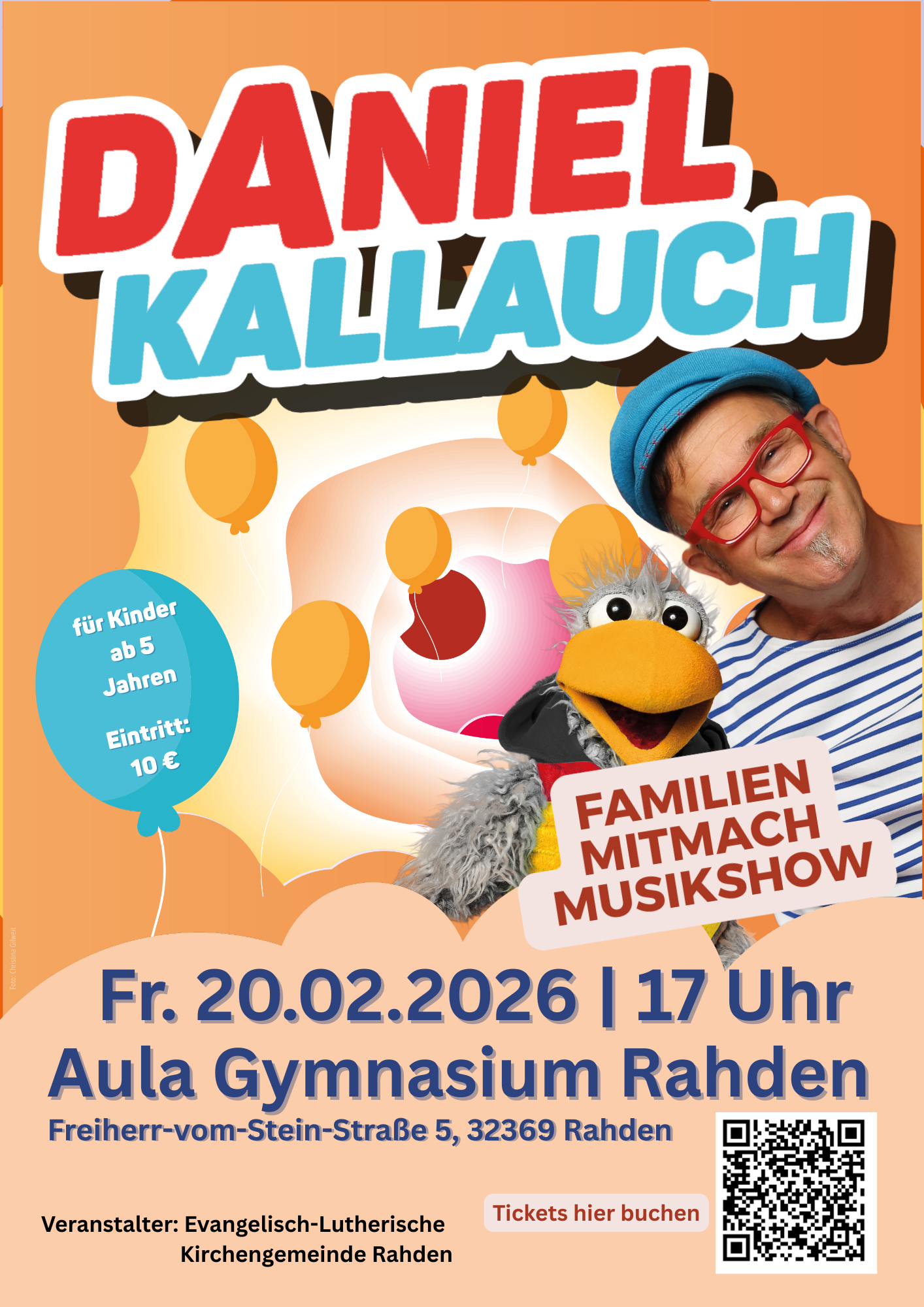 Ein Auftritt mit Daniel Kallauch ist ein großer Spaß mit Tiefgang. So sind die Stadthallen, Kirchen und Schulaulen oft prall gefüllt. Jeder, der sich Eintrittskarten sichern kann, macht seine Familie glücklich.