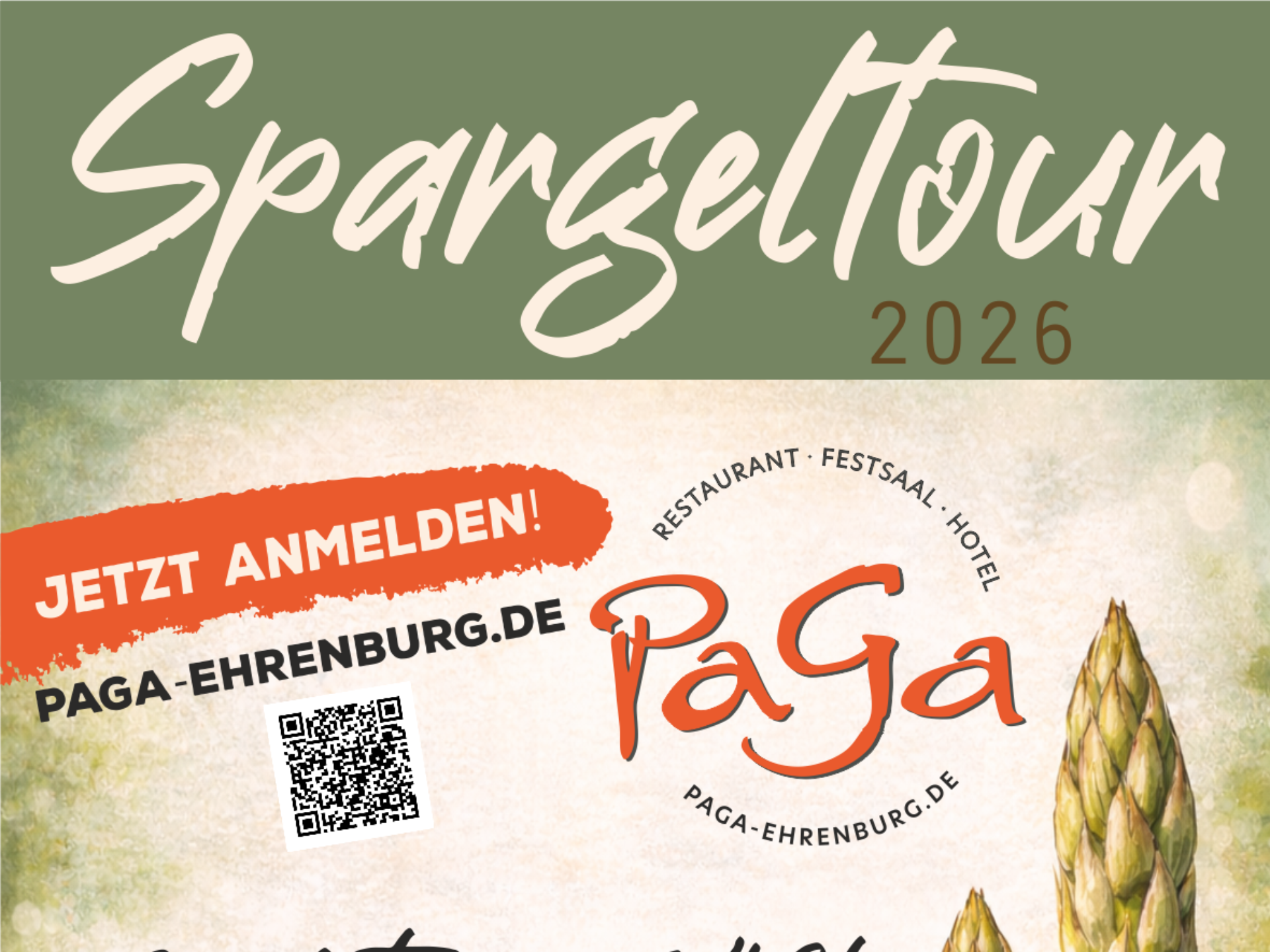Spargelbüfett mit Spargel, Hollandaise, Schnitzel, Schinken, Rührei, Kartoffeln, Kroketten, mediterrane Gemüsepfanne, vegane Schnitzel und Spargelquiche