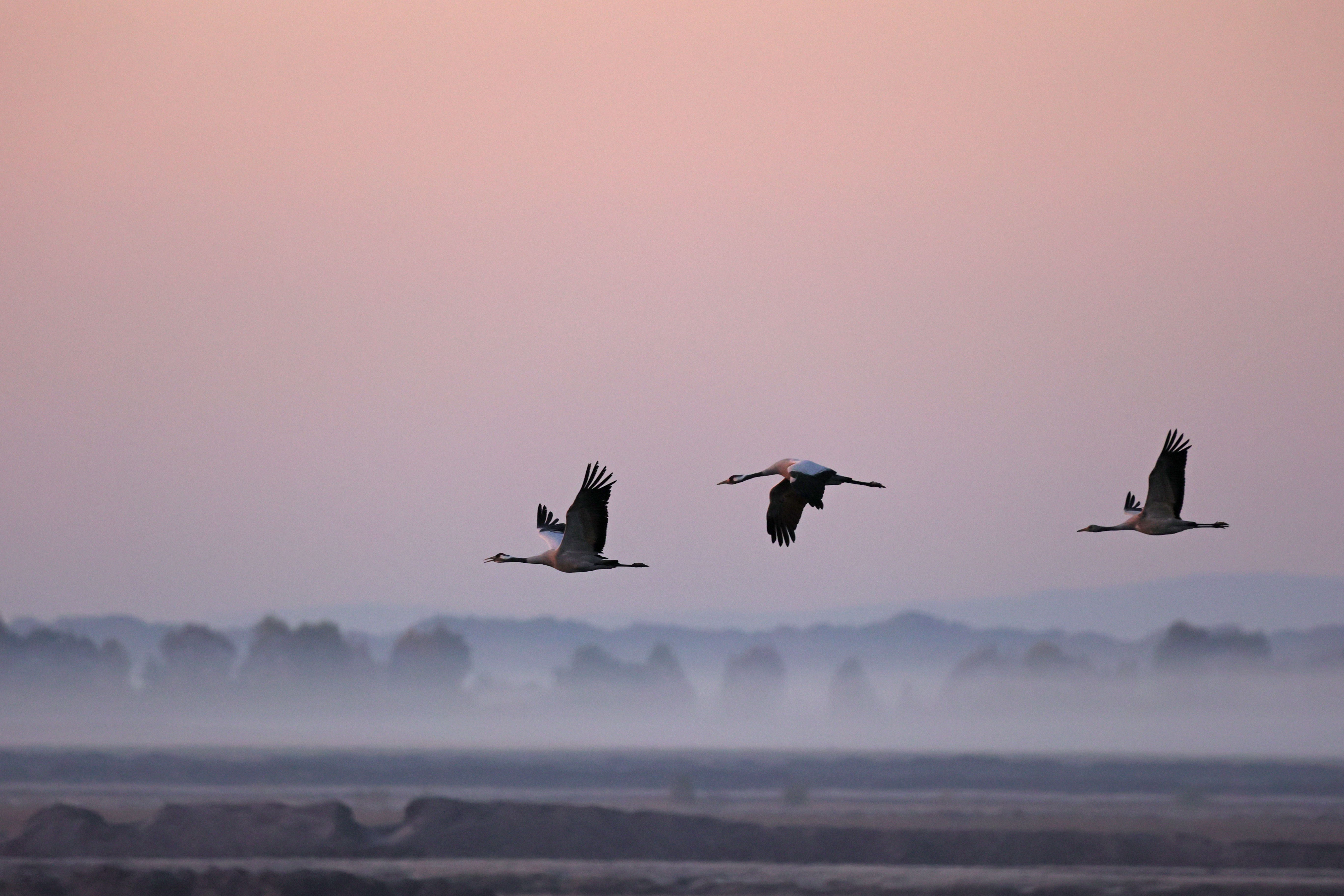 In der Morgendämmerung geht es vom Parkplatz ca. 1,2 Km zum Beobachtungspunkt im Oppenweher Moor. Beim Sonnenaufgang werden die ehrgroßen Vögel des Glücks bei ihrem Ausflug von den Schlafplätzen hautnah zu erleben sein. Nachdem die Kraniche die Stille des Morgens in ihrem Trompetenkonzert durchbrochen haben, geht aus auf einen Moor-Rundgang. Hier wird ergründet, warum das Moor so ein wichtiger und schützenswerter Lebensraum ist. Dann werden die Futterplätze im Privat-PKW angefahren. Bitte an festes Schuhwerk denken und Fernglas mitbringen.