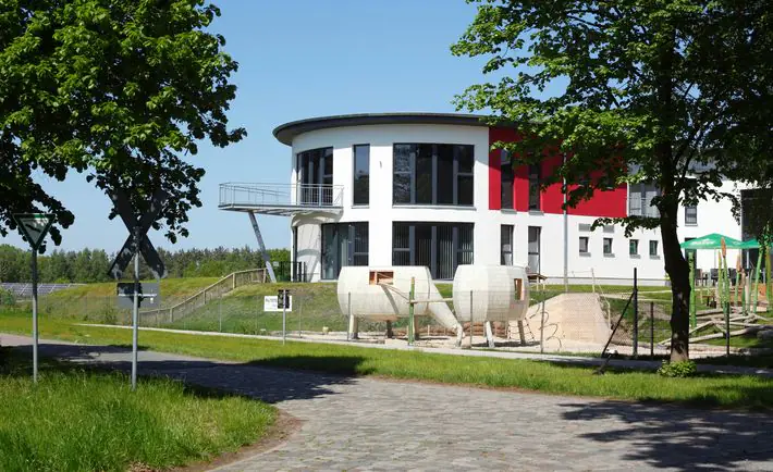 Ein naturnaher Spielplatz für Kinder zum Entdecken und Toben rund um das Thema Moor ein.