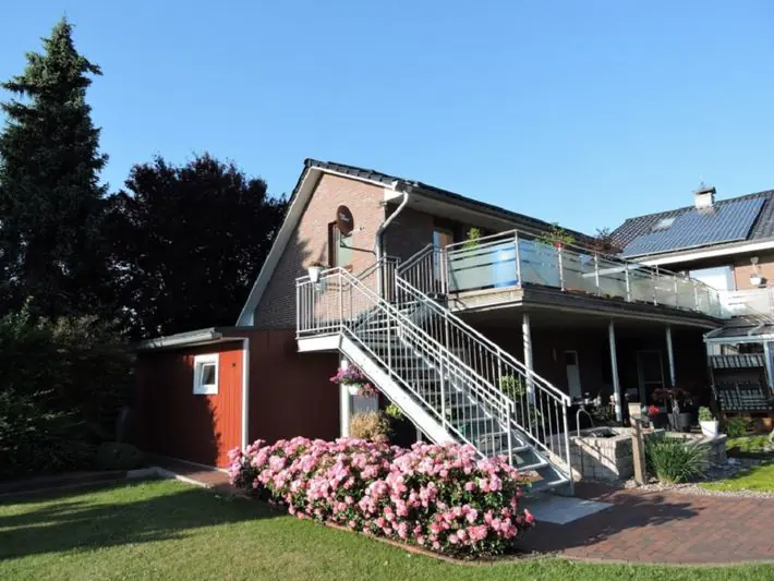 Moderne, stilvoll eingerichtete Ferienwohnung (40m²) in der 1. Etage eines Einfamilienhauses zentral gelegen. Einbauküche, bequemes Doppelbett, großzügige Dachterrasse mit gemütlicher Sitzgelegenheit mit wundervollem Ausblick auf die idyllische, ländliche Natur. Nichtraucher, keine Haustiere.